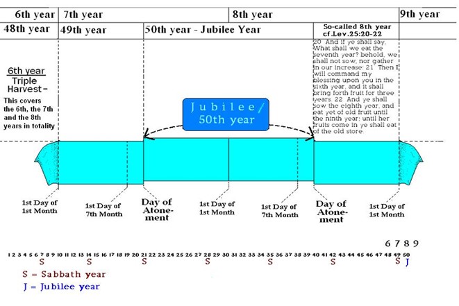 22: 너희는 팔년째에 씨를 뿌릴 것이요, 구년째에 그 열매가 나올 때까지 옛 열매를 먹을 것이며, 그 열매가 나올 때까지 너희는 옛 저장물을 먹을 것이니라. (개역개정)